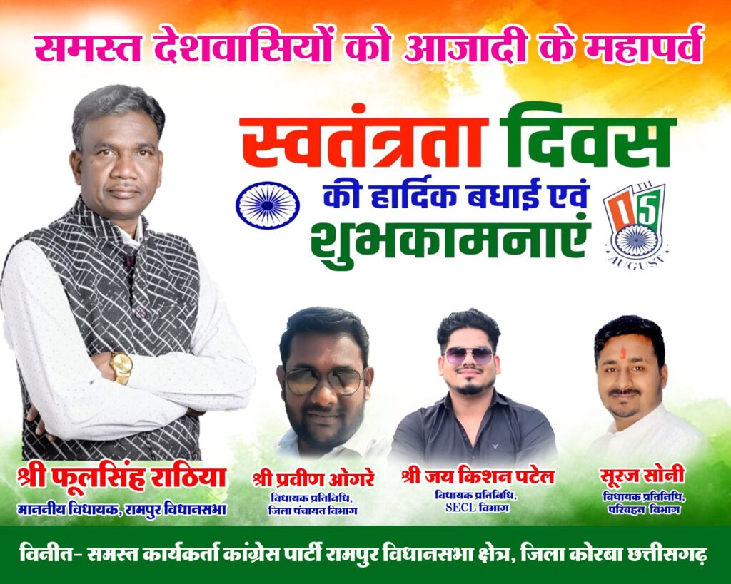 कोरबा (समाचार मित्र) देश की आजादी की 78वीं वर्षगांठ उमंग और हर्षोल्लास पूर्ण माहौल में संपन्न हुआ। मुख्य अतिथि उद्योग, वाणिज्य एवं श्रम मंत्री श्री लखनलाल देवांगन ने फुटबाल मैदान सीएसईबी कोरबा (पूर्व) में मुख्य समारोह में राष्ट्रीय ध्वज तिरंगा फहरा कर परेड की सलामी ली। समारोह में छात्र-छात्राओं द्वारा सास्कृतिक कार्यक्रमों का प्रदर्शन किया गया। समारोह में शासकीय सेवा में उत्कृष्ट कार्य करने वाले कर्मचारियों को पुरस्कृत भी किया गया। मुख्य अतिथि मंत्री श्री देवांगन ने मुख्यमंत्री श्री विष्णुदेव साय द्वारा प्रदेश की जनता के नाम प्रेषित संदेश का वाचन किया।कोरबा में स्वतंत्रता दिवस मुख्य समारोह में मुख्य अतिथि मंत्री श्री लखनलाल देवांगन ने हजारों नागरिकों की उपस्थिति में प्रातः 9 बजे ध्वजारोहण किया और परेड की सलामी ली। इस अवसर पर राष्ट्रगान प्रस्तुत किया गया। सुरक्षा बलों द्वारा हर्ष फायर किया गया और छत्तीसगढ़ सशस्त्र बल, सीआइ्र्रएसएफ, जिला पुलिस बल, सुरक्षा बल,नगर सेना, वन रक्षक, स्काउट गाइड सीनियर-जूनियर डिवीजनों द्वारा आकर्षक मार्च पास्ट प्रस्तुत किया गया। परेड कमांडरों द्वारा परेड रिपोर्ट प्रस्तुत की गई। मुख्य अतिथि ने परेड का निरीक्षण किया। इस दौरान उनके साथ कलेक्टर श्री अजीत वसंत एवं पुलिस अधीक्षक श्री सिद्धार्थ तिवारी उपस्थित थे। उन्होंने अनेकता में एकता के प्रतीक गुब्बारे आकाश में छोड़े। इसके बाद विभिन्न शालाओं के छात्र-छात्राओं द्वारा आकर्षक, मनमोहक देशभक्ति गीतों पर आधारित सांस्कृतिक कार्यक्रमों की प्रस्तुति दी गई। जिसका दर्शकों द्वारा करतल ध्वनि से स्वागत किया गया ओर कार्यक्रमों का आनंद लिया। समारोह में अपने कर्तव्य निर्वहन के दौरान शहीद होने वाले जवानों के परिजनों को सम्मानित किया गया।मुख्य अतिथि द्वारा पुरस्कार वितरण – समारोह में मुख्य अतिथि श्री देवांगन के करकमलों द्वारा परेड, सांस्कृतिक कार्यक्रम में उत्कृष्ट प्रदर्शन करने वाले दलों को शील्ड और प्रशस्ति पत्र प्रदान कर सम्मानित किया गया।