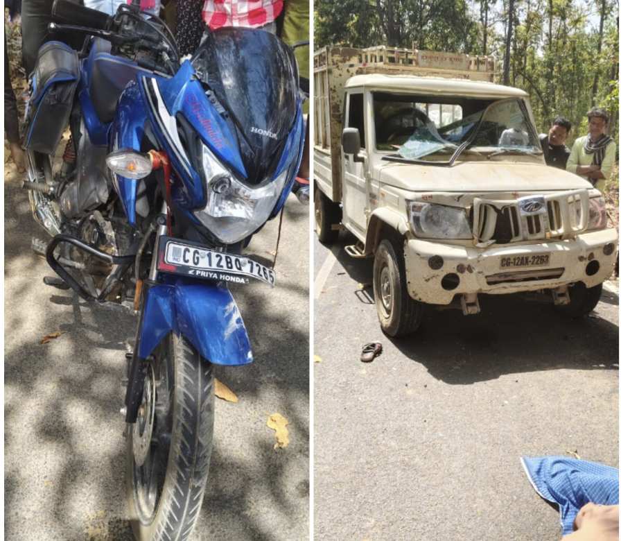 करतला (समाचार मित्र) करतला थाना क्षेत्र में पिकअप और बाइक में जबरदस्त भिड़ंत से बाइक चालक की मौत हो गई है। मदवानी (करतला ) बाजार चौक के पास दोपहर लगभग 12:15 बजे आज पिकअप चालक की लापरवाही से बाइक सवार की मौत हो गई है। मृतक का नाम विशेष राठिया बताया जा रहा है। दुर्घटना के तुरंत बाद ग्रामीण घटना स्थल में पहुंचे तब मामले की जानकारी करतला पुलिस निरीक्षक कृष्ण कुमार वर्मा को दी गई जिससे मौके पर नायब तहसीलदार श्री भगत और निरीक्षक दोनों पहुंचकर मृतक के परिजनों को तात्कालिक सहायता राशि 25 हज़ार रुपए सहयोग के रूप में प्रदान किए। मृतक का पोस्टमॉर्टम करवाने के लिए सामुदायिक स्वास्थ्य केंद्र करतला लाया गया। पुलिस दुर्घटना कारित गाड़ी को जप्त कर आरोपी पिकअप चालक को गिरफ्तार कर लिया है और मामले में आगे की कार्यवाही कर रहे है।