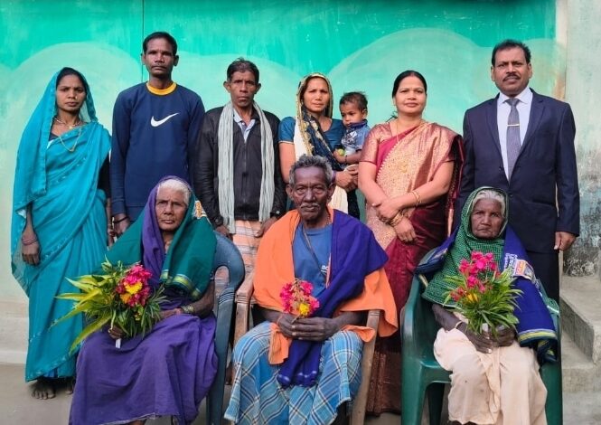 कोरबा/करतला (समाचार मित्र) शासकीय उच्चतर माध्यमिक विद्यालय नवापारा (चैनपुर) विकास खंड करतला जिला कोरबा छत्तीसगढ़ में पदस्थ राज्यपाल पुरस्कृत प्राचार्य डॉक्टर जगन्नाथ हिमधर द्वारा अपने पिताश्री कुनूराम हिमधर के 34 वें पुण्यतिथि 09/01/2026 को पूर्व पदस्थ शालेय ग्राम नवापारा डोंगआमा में बुजुर्ग महिला एवं पुरुषों को धोती, लुगड़ा और कंबल वितरण कर उन सभी बुजुर्गों का आशीर्वाद प्राप्त किया। पूर्व में 38 वर्ष पहले ग्राम में पदस्थ थे। अब 25 साल बाद उक्त ग्राम नवापारा डोंगाआमा में पहुंचकर सबसे मिलकर प्रसन्न हुआ। ग्रामीणों ने श्री हिमधर को उच्च पद (प्राचार्य) के साथ अपने बीच पाकर बहुत ही प्रसन्न हुए।एक दूसरे के परिवार के बारे में परिचित हुए।इस दौरान हिमधर की पत्नी डॉक्टर गीतादेवी हिमधर राज्यपाल पुरस्कृत व्याख्याता भी साथ रही और लोगों को शिक्षा के महत्व को बताकर मोटिवेशन की। आज डॉक्टर हिमधर दंपत्ति द्वारा 25 से अधिक लोगों को वस्त्र वितरण किए। ऐसे ही हिमधर दंपत्ति द्वारा अपने पिता के याद में हर वर्ष वस्त्र वितरण खेलकूद का आयोजन, प्रतिभावान छात्रों को इनाम देकर प्रोत्साहित करना ,मरीजों को फल वितरण, शालाओं, अनाथालयों में जरूरी चीजें प्रदान करना आदि कार्य करते रहते हैं। ये दंपत्ति अपना कुछ समय समाज सेवा में व्यतीत करते हैं जो कि प्रेरणादायी है।
