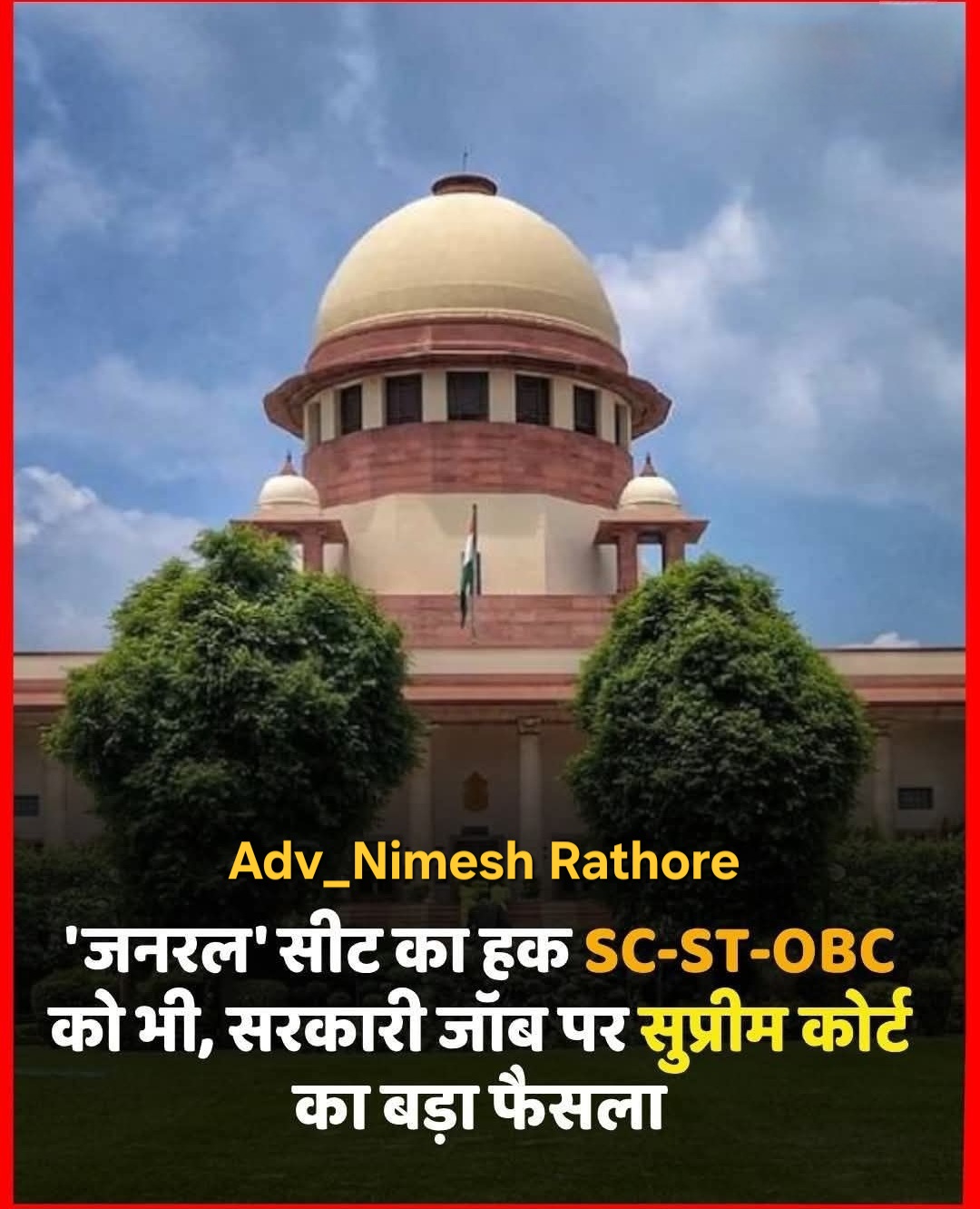 नई दिल्ली (समाचार मित्र) कोर्ट ने आरक्षण और भर्ती प्रक्रिया से जुड़े एक महत्वपूर्ण मामले में बड़ा और स्पष्ट फैसला सुनाया है. अदालत ने कहा है कि अगर रिजर्व कैटेगरी का कोई उम्मीदवार सामान्य कैटेगरी के कट-ऑफ से अधिक अंक लाता है, तो उसे जनरल कैटेगरी का उम्मीदवार माना जाएगा.