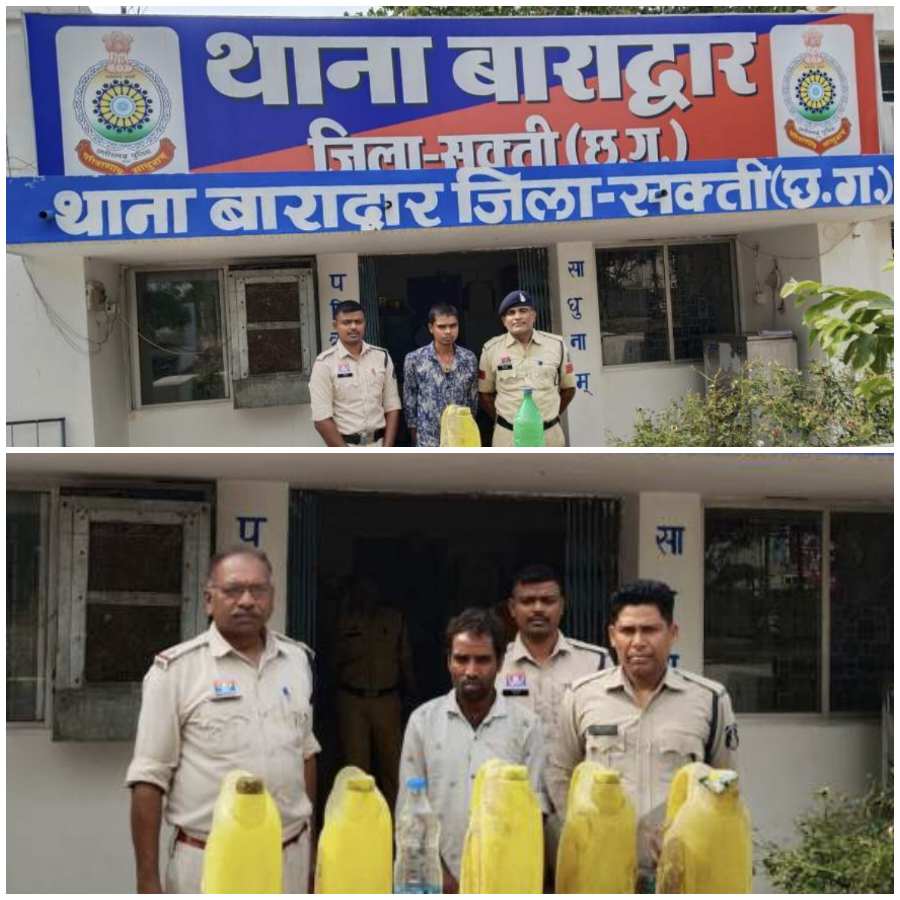 सक्ती (समाचार मित्र) पुलिस अधीक्षक सक्ती सुश्री अंकिता शर्मा महोदया द्वारा क्षेत्र मे अवैध जुआ, गांजा व शराब बिक्री एवं परिवहन करने वाले आपराधियों पर अकुंश लगाने हेतु अधिक अधिक कार्यवाही करने की निर्देश पर श्रीमान अतिरिक्त पुलिस अधीक्षक महोदय, श्री हरीश यादव जी, अनुविभागीय अधिकारी (पुलिस) श्री मनीष कुंवर सक्ती के मार्गदशन पर थाना प्रभारी निरीक्षक लखन पटेल थाना बाराद्वार द्वारा दिनांक 03.05.25 को मुखबीर की सुचना पर ग्राम पलाड़ीकलाॅ एवं मुक्ताराजा में अलग अलग टीम बनाकर रेड कार्यवाही कर आरोपीगण 1. रामचरणकुर्रे पिता सजन राम कुर्रे उम्र 47 साल निवासी वार्ड क्रमांक 11 बाराद्वार थाना बाराद्वार जिला सक्ती(छग) 2. रामखिलावन बरेठ पिता समे लाल बरेठ उम्र 31 साल निवासी पलाड़ीकलाॅ थाना बाराद्वार जिला सकती (छ0ग0) कब्जे से कुल 28 लीटर कच्ची महुआ शराब भरी हुई कीमति 3800/- रूपये को जप्त किया गया जिसे आबकारी एक्ट के प्रावधानो के तहत विधिवत कार्यवाही कर आबकारी अधिनियम का सबुत पाये जाने से आरोेपीयान को गिरफ्तार कर रिमांड पर मान.न्यायालय पेश किया गया।